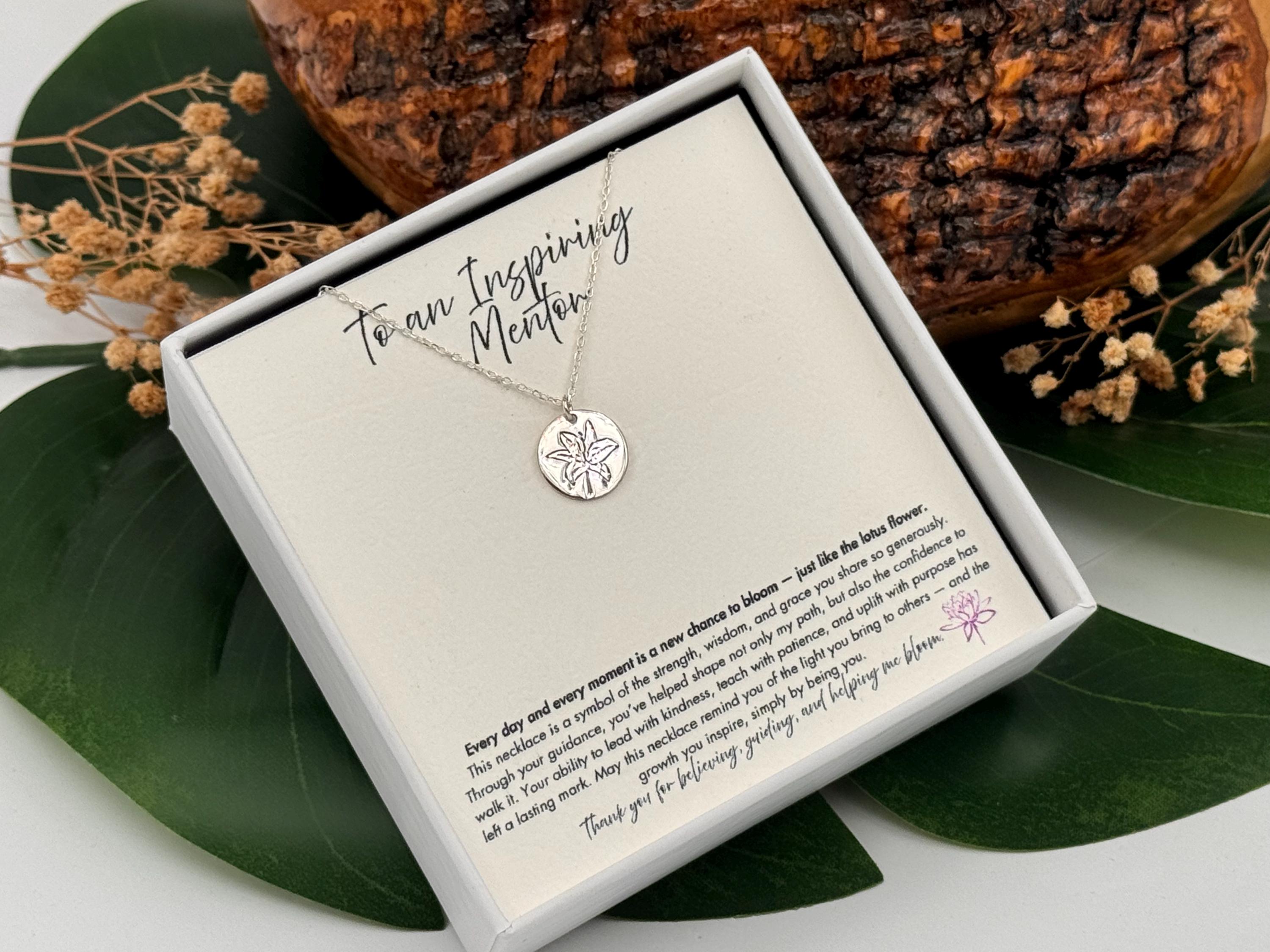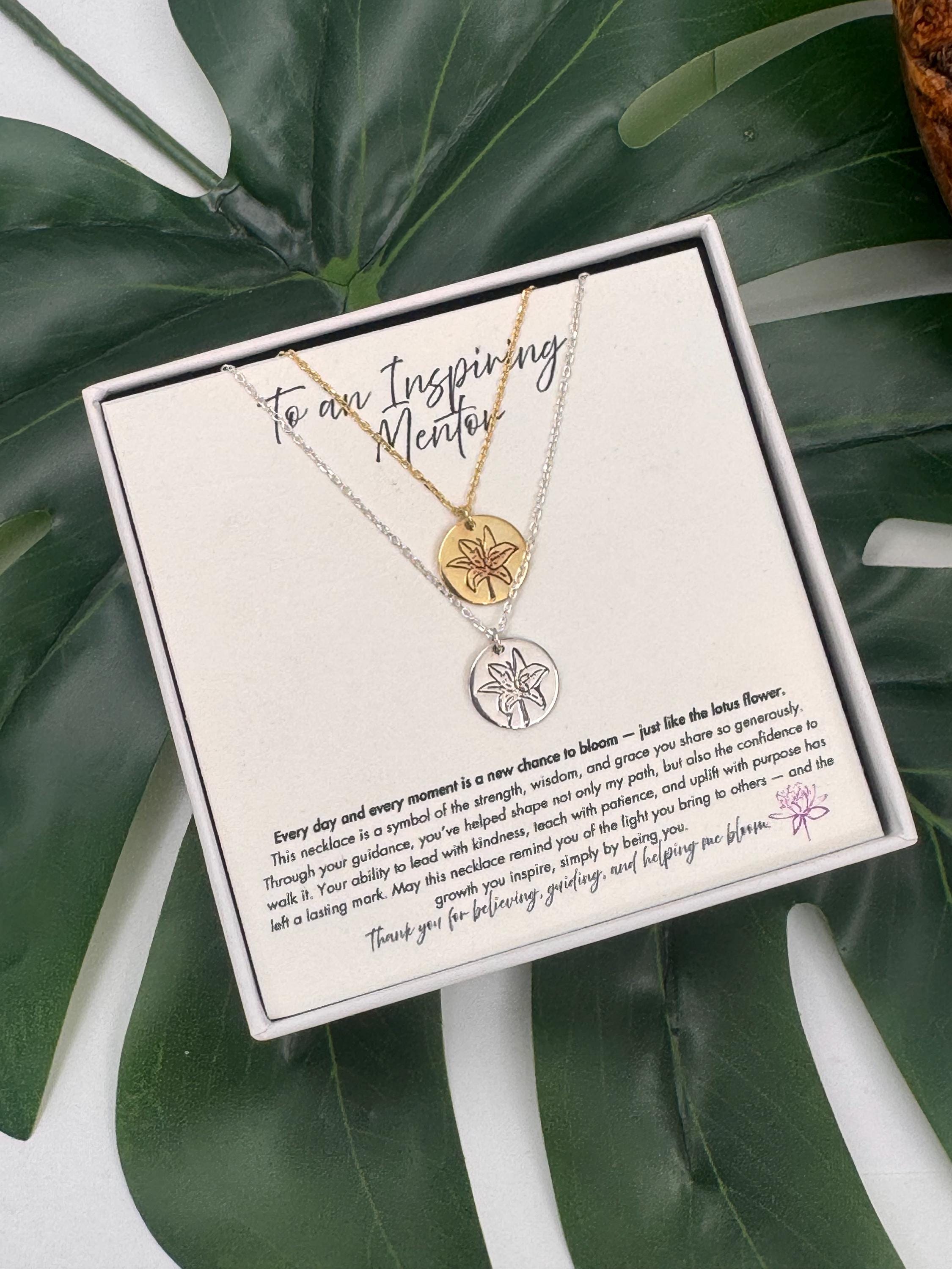 The lotus flower represents purity, strength, and the ability to rise above challenges—just like the mentor who inspires and guides you every day. This elegant necklace is the perfect way to say thank you to the special mentor, professor, tutor, or boss who has made a lasting impact in your life.