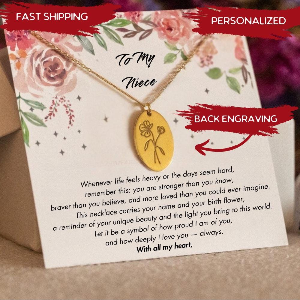 Personalized Niece Necklace with Birth Flower & Name – Meaningful Christmas or Birthday Gift for Niece