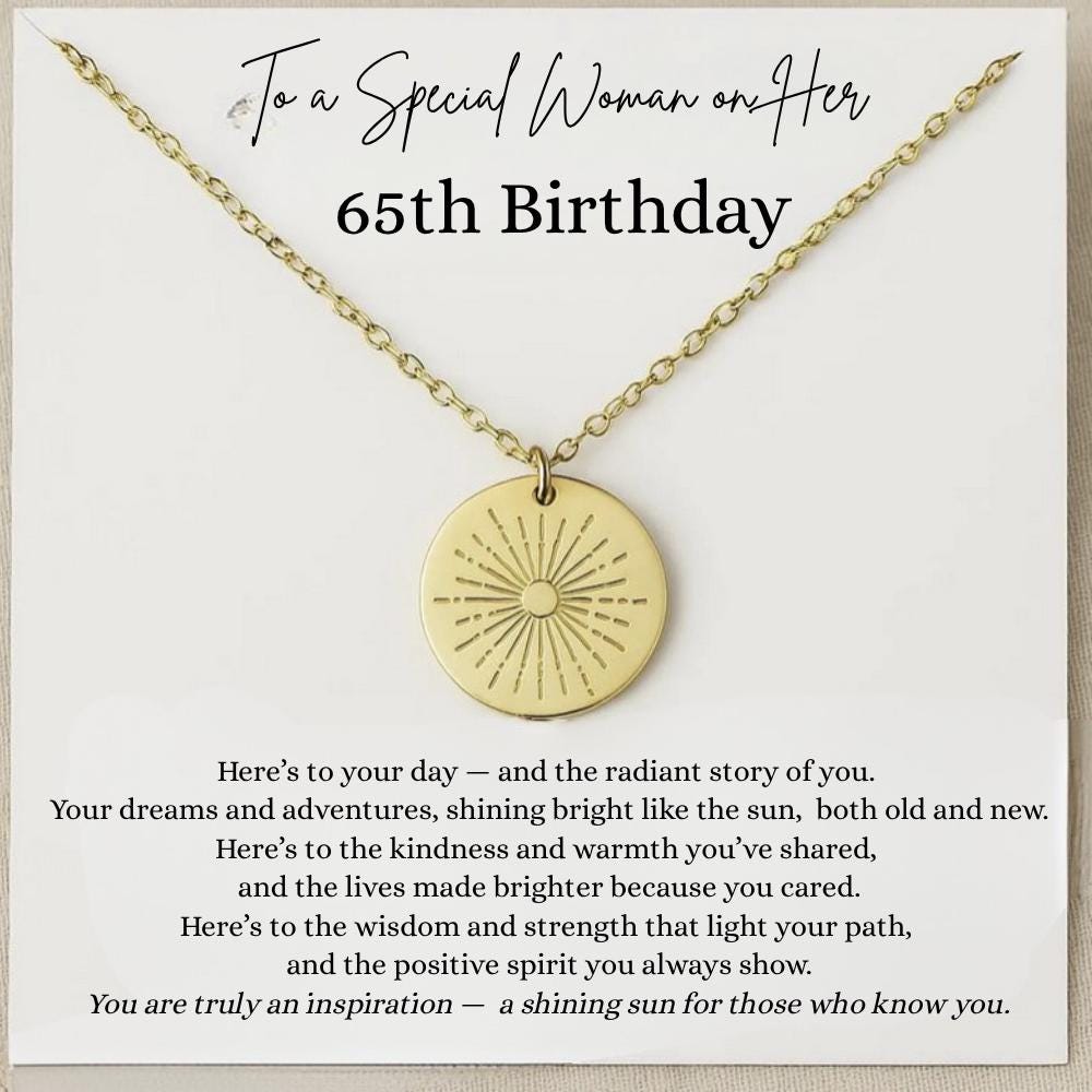 Personalized 65th Birthday Gift | Sun Necklace for Women, Mom, Aunt & Best Friend | Back Engraving Jewelry | Meaningful Milestone Present