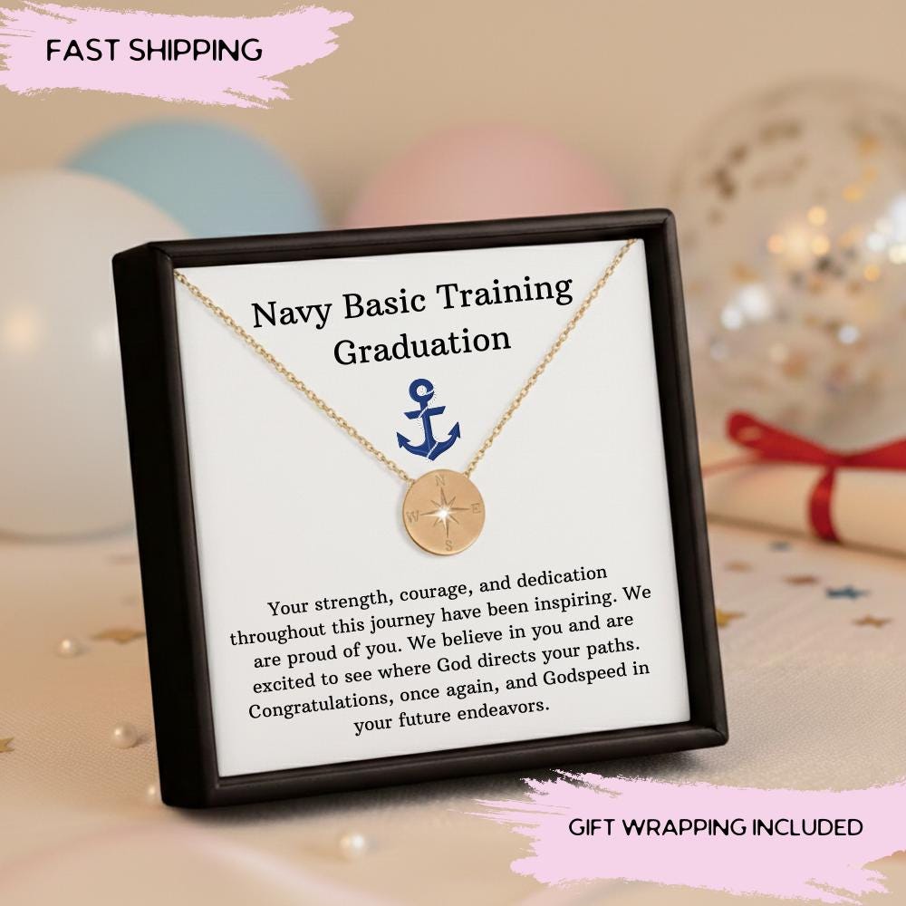 Whether you’re honoring your daughter, sister, or loved one, this necklace serves as a timeless keepsake representing her dedication and commitment throughout basic training. The compass pendant reflects the direction and confidence she carries into her Navy career.