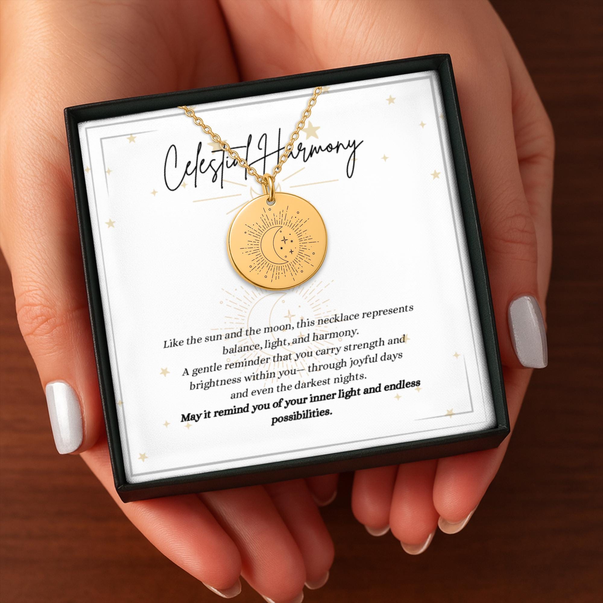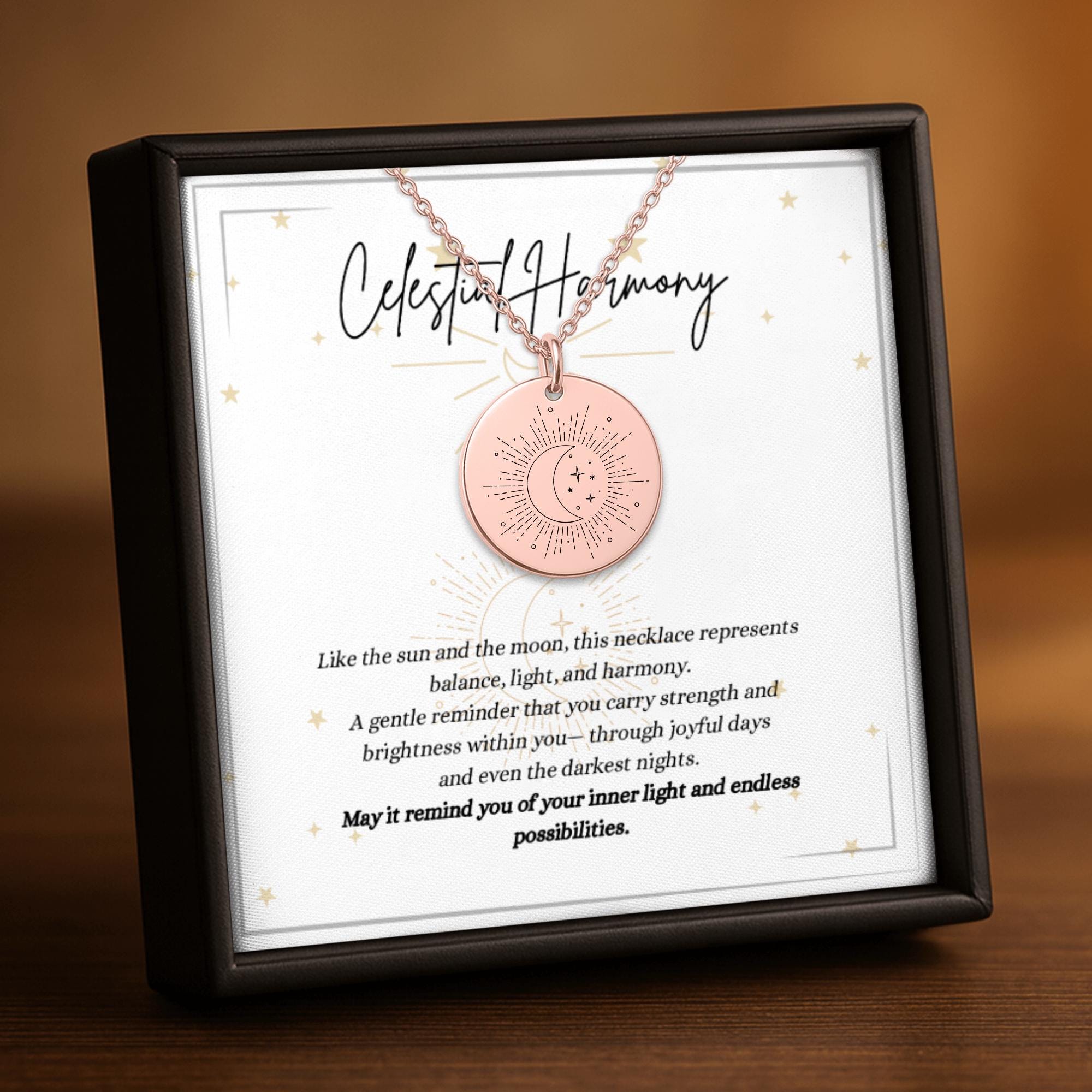 A timeless Sun and Moon necklace symbolizing balance, harmony, and inner light — a thoughtful gift for her.