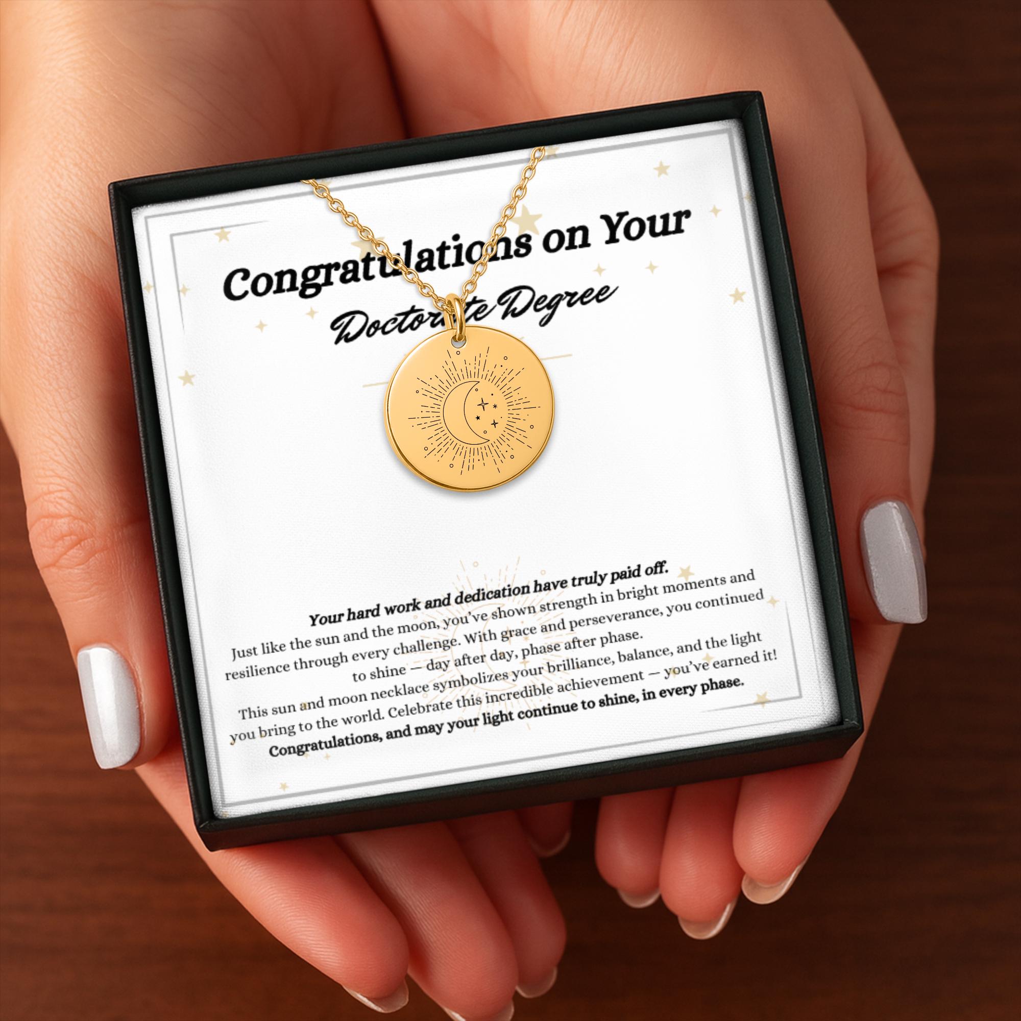 Doctorate Degree Graduation Gift for Her | Sun & Moon Necklace | 925 Sterling Silver | Gift Box Included